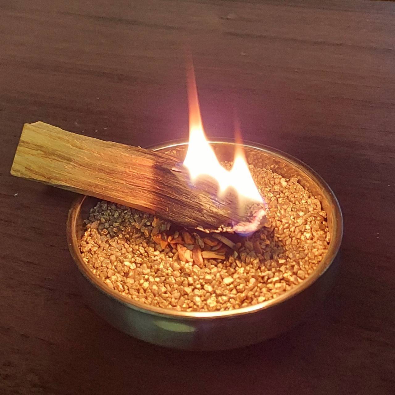 パロサントの下に炭を置くと、燻されるので浄化に必要な煙は出てくれます。